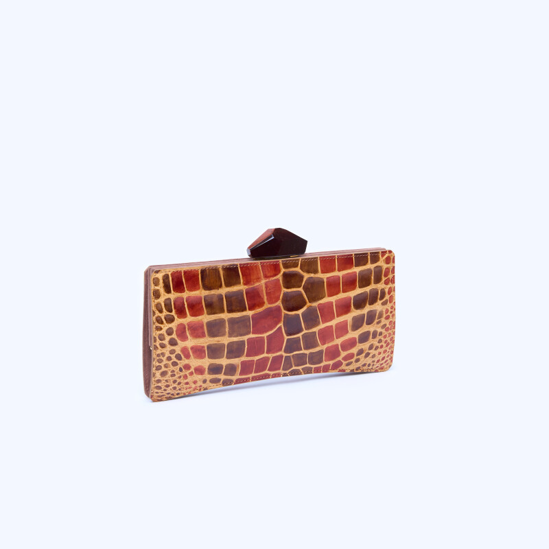 "Ashley" Cigarette Arlequin pochette, an exclusive creation expertly crafted using fine Alligator leather, hand-painted for a unique touch and falcon eye pulsoir.