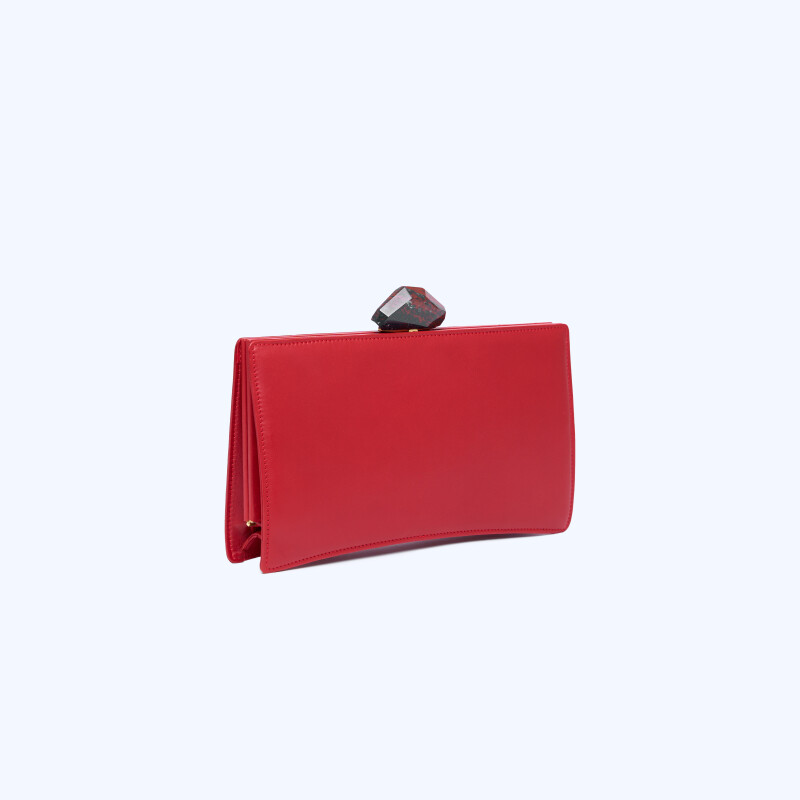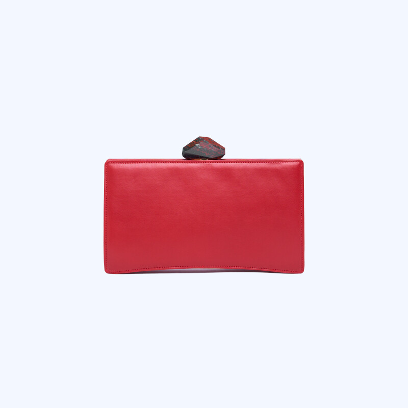 "Ashley" Pochette, crafted in nappa leather with a red and green jasper stone pulsoir.