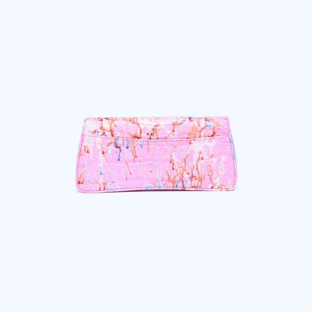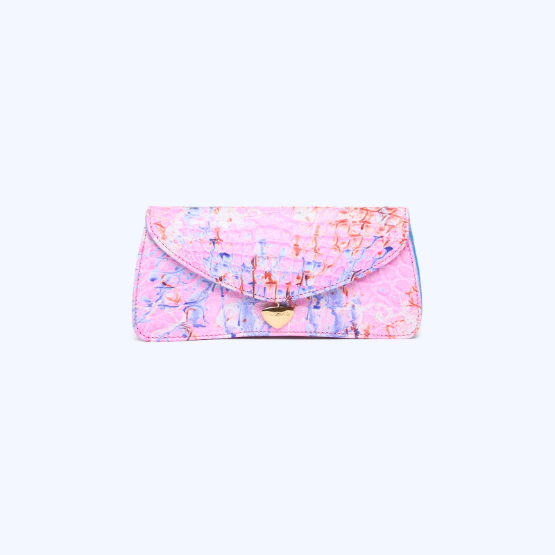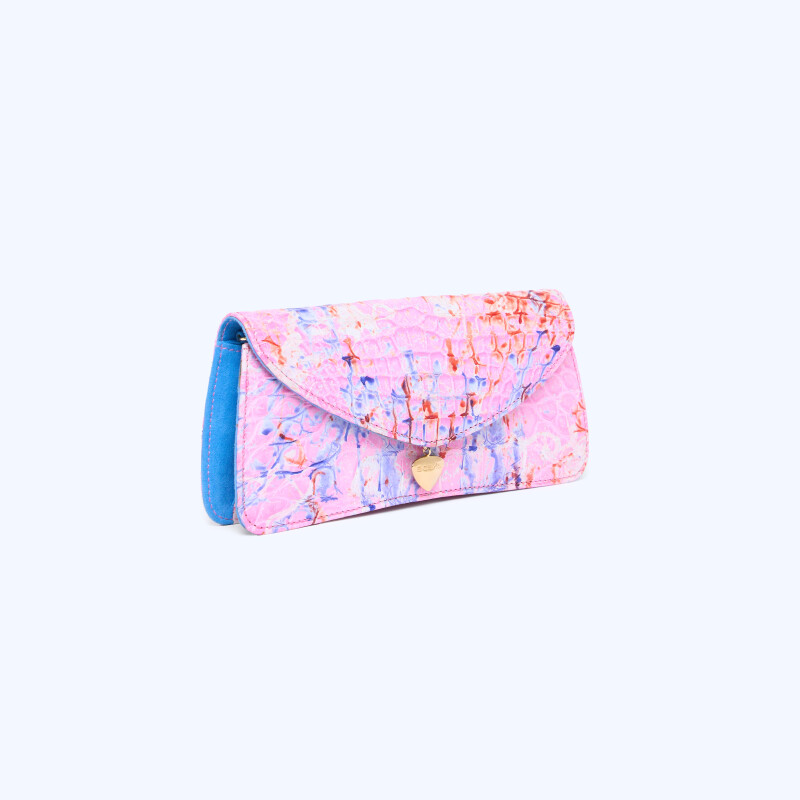 "Ellie" Cigarette Colorful Pochette, An expertly crafted exclusive creation using fine alligator leather, hand-painted for a unique touch. Handmade closure in 3-micron yellow gold.