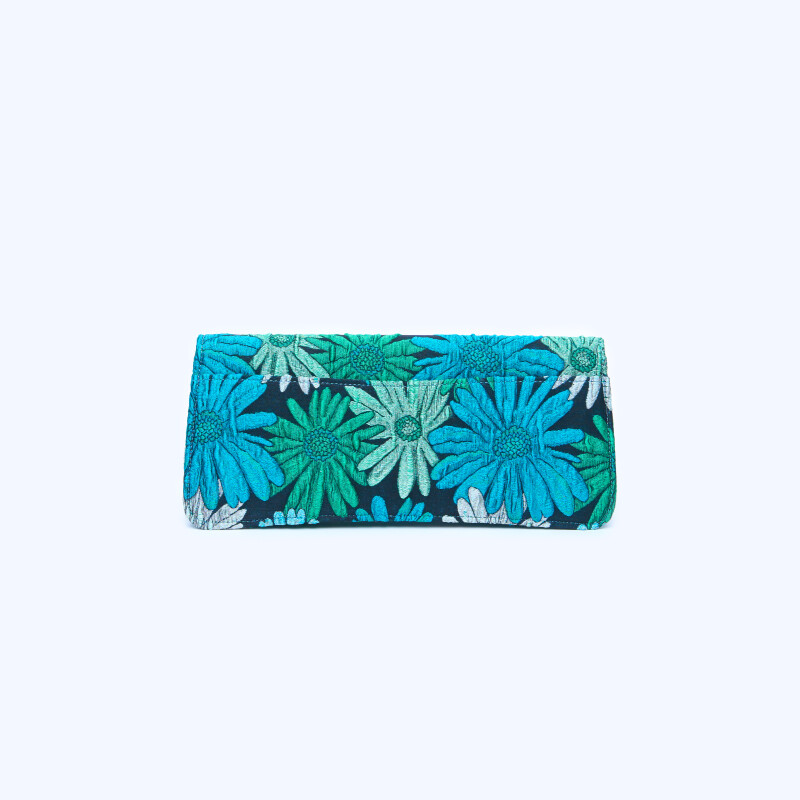 "Ellie" flowers Pochette cigarette, part of our limited collection, made with precious green floral fabric. Handcrafted closure in 3-micron yellow gold.