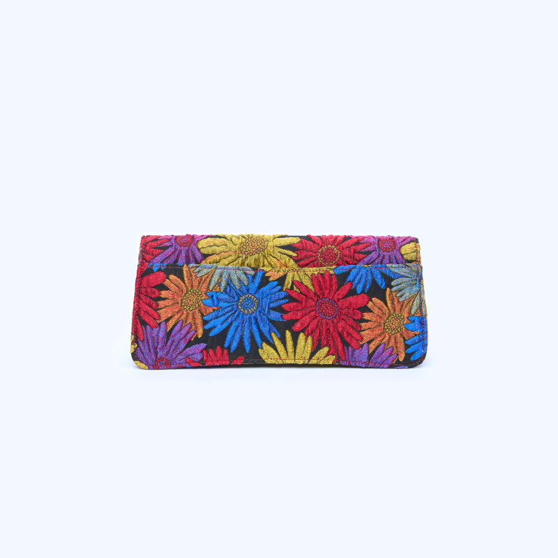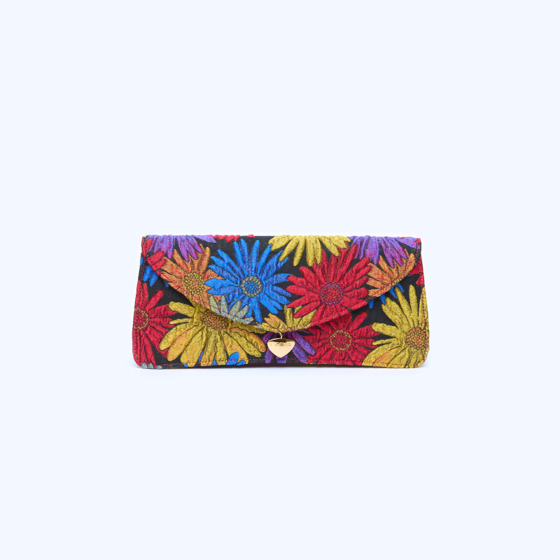 "Ellie" flowers Pochette cigarette, part of our limited collection, made with fine red floral fabric. Handcrafted closure in 3-micron yellow gold.