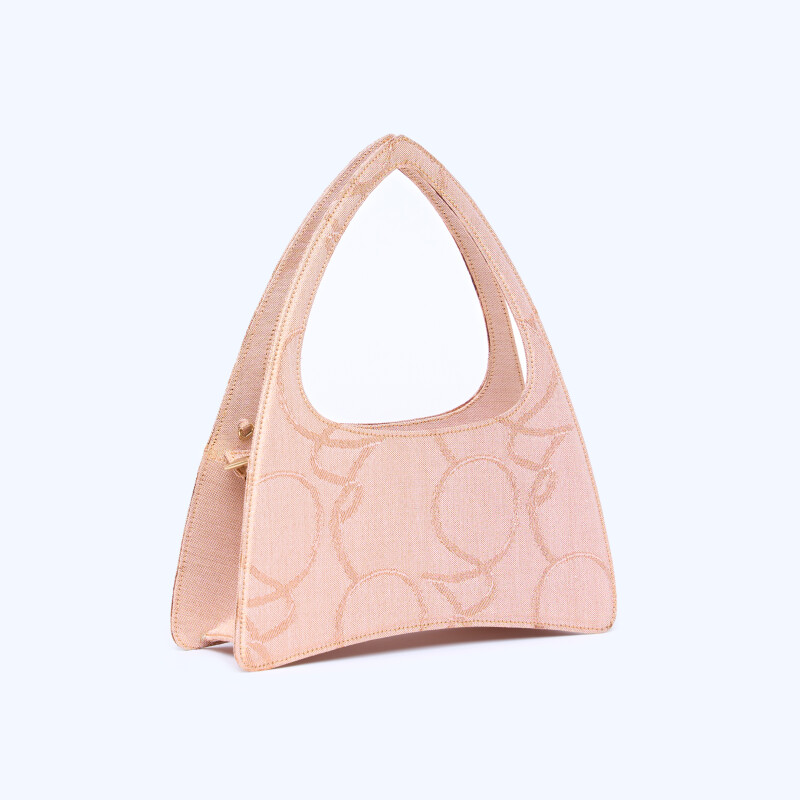 "Ellie" Triangle handbag, made of jacquart fabric with copper pattern. Handmade closure with 3-micron gold plating.