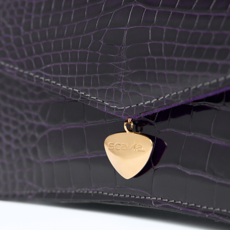 "Ellie" Cigarette pochette, made of fine alligator leather. Handmade closure with 3-micron gold plating.