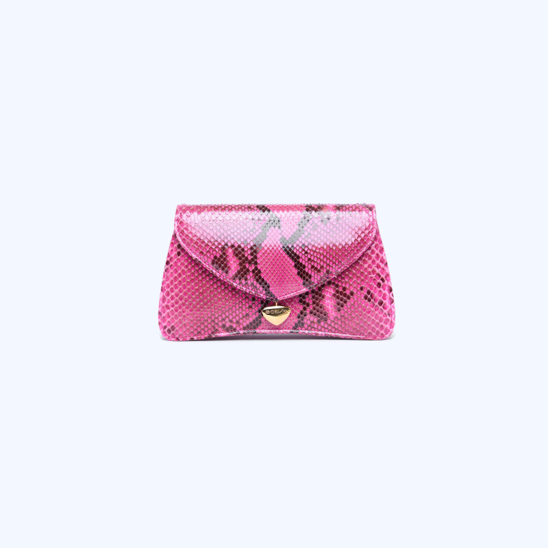"Ellie" pochette, made of fine python leather. Handmade closure with 3-micron gold plating.