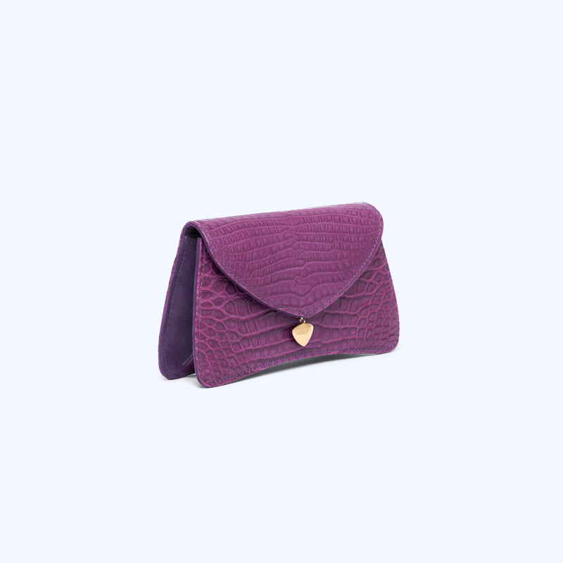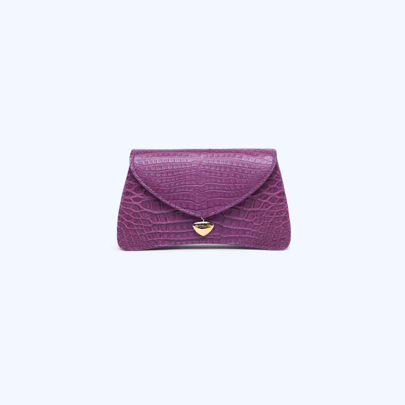 "Ellie" pochette, made of fine alligator leather. Handmade closure with 3-micron gold plating.