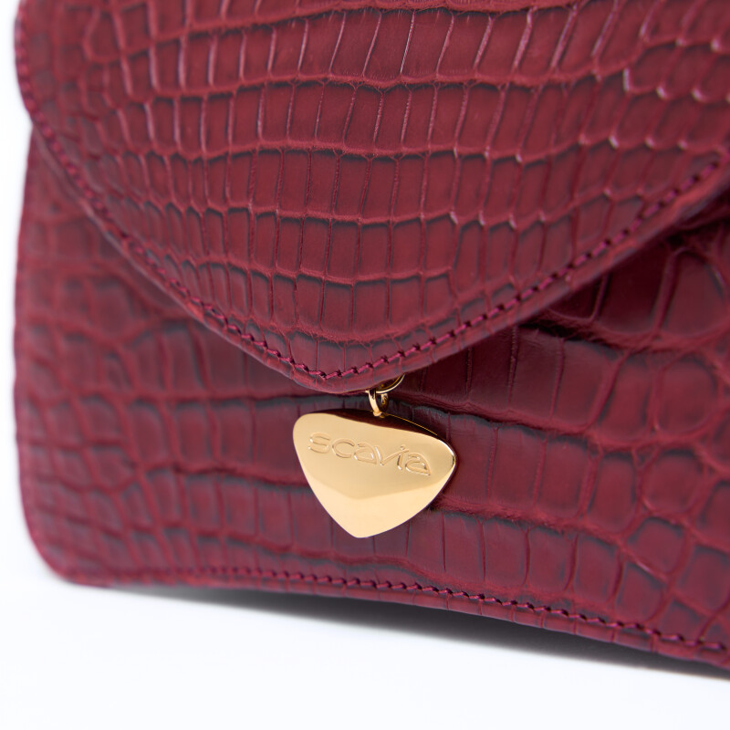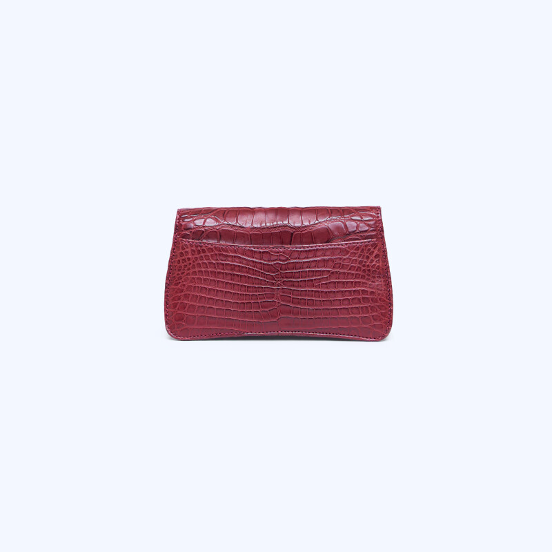 "Ellie" pochette, made of fine alligator leather. Handmade closure with 3-micron gold plating.