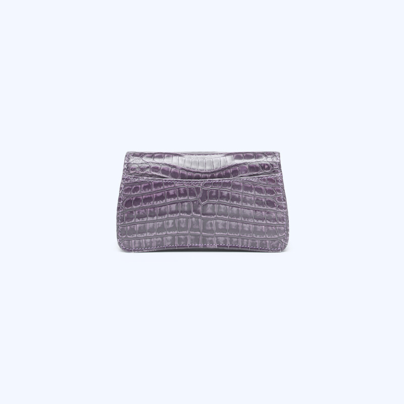 "Ellie" pochette, made of fine alligator leather. Handmade closure with 3-micron gold plating.