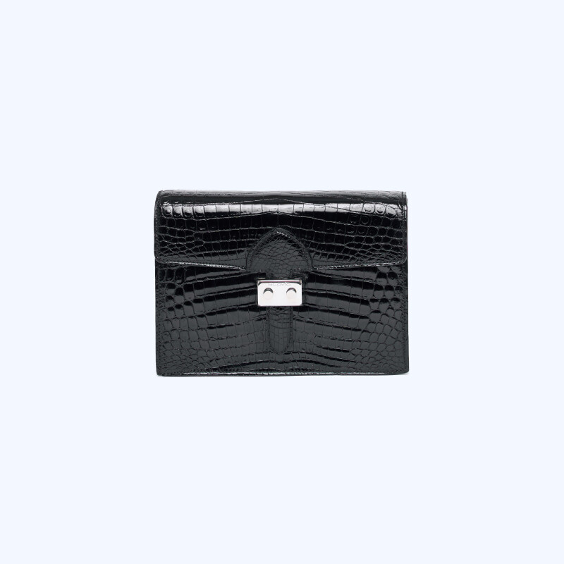 "Man" man's briefcase, crafted from fine crocodile leather, with snap closure finished in 3-micron palladium.