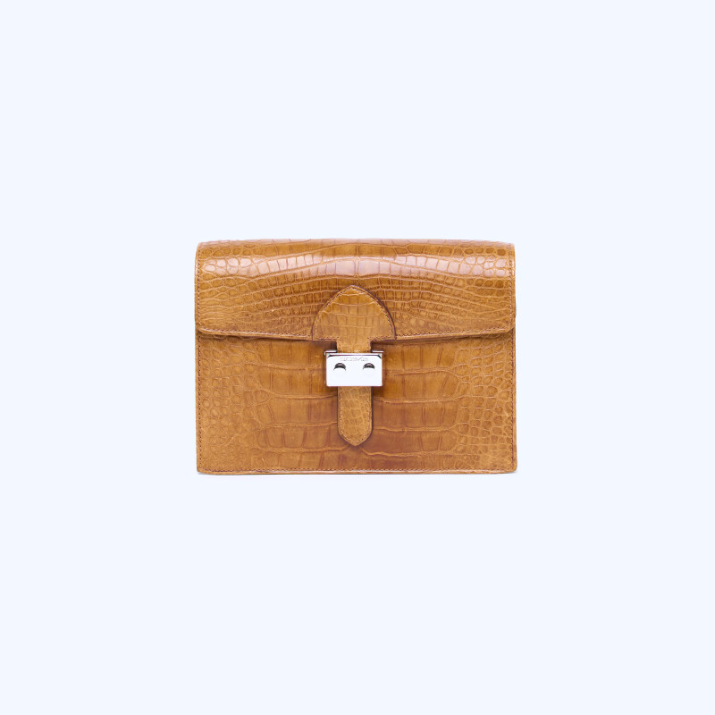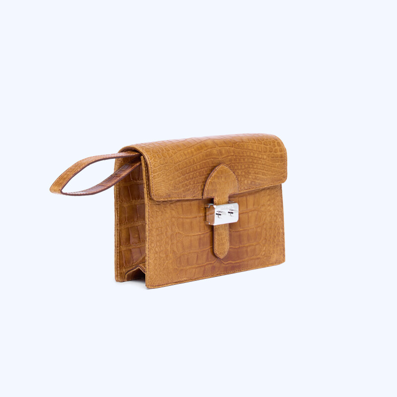 "Man" man's briefcase, crafted from fine alligator leather, with snap closure finished in 3 micron palladium.