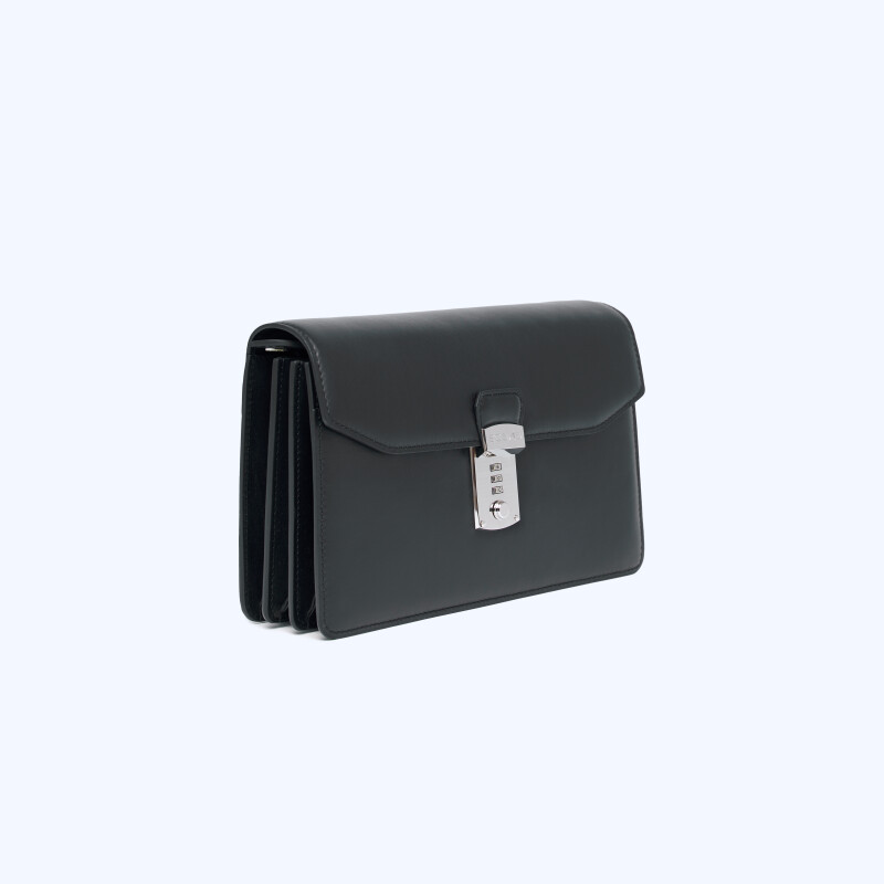 "Max" man's briefcase 3 sections, crafted from calf leather, with snap and combination lock finished in 3-micron palladium.