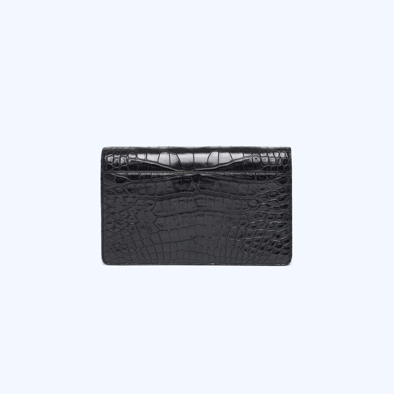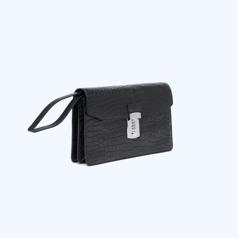 "Man" man's briefcase, crafted from fine crocodile leather, with snap closure finished in 3-micron palladium.