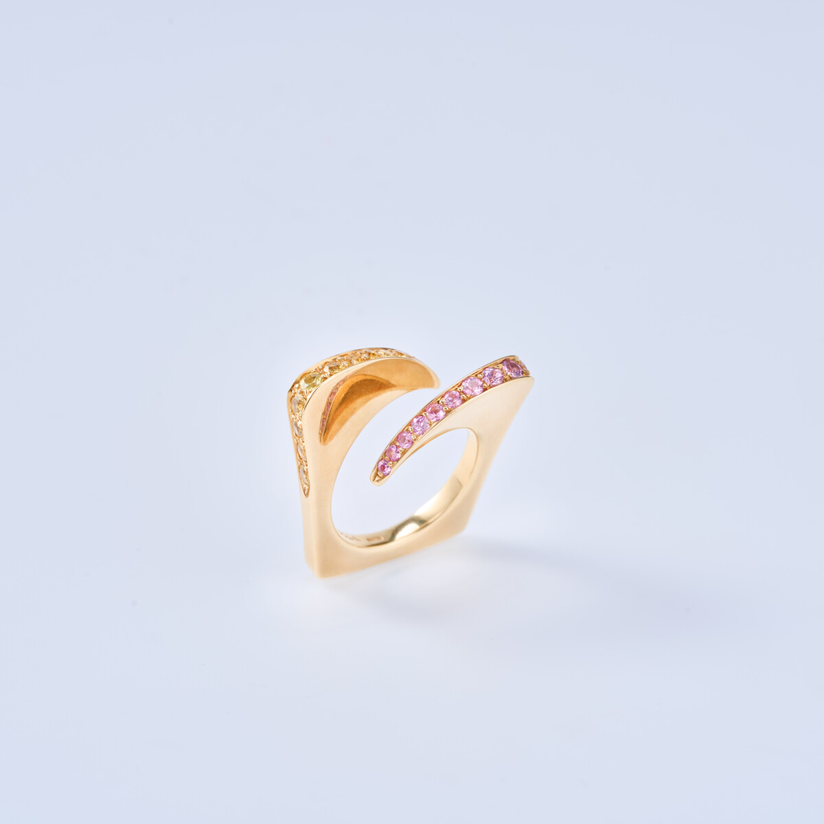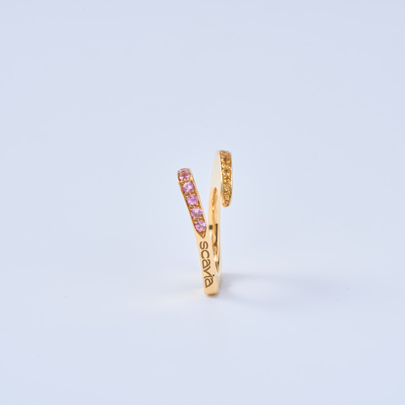 Made of 18kt yellow and rose gold with yellow and pink pavé-cut sapphires.