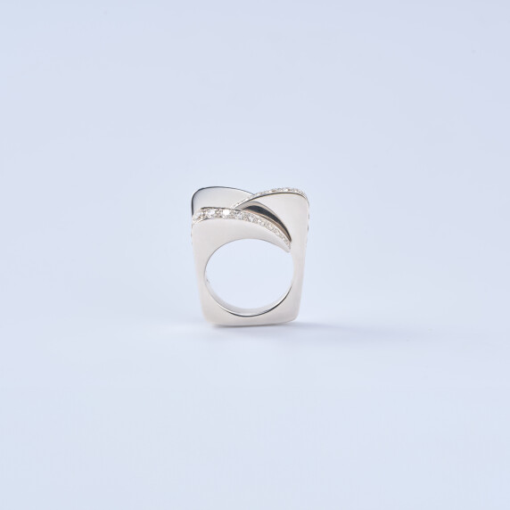 A sheet of gold, ignited by the luminous touch of diamonds, folds over itself to embrace the brilliance of a gem… a symbol of the union between two lives merging in a tender and precious embrace. Amazing is a ring, pendant, brooch, and earrings.