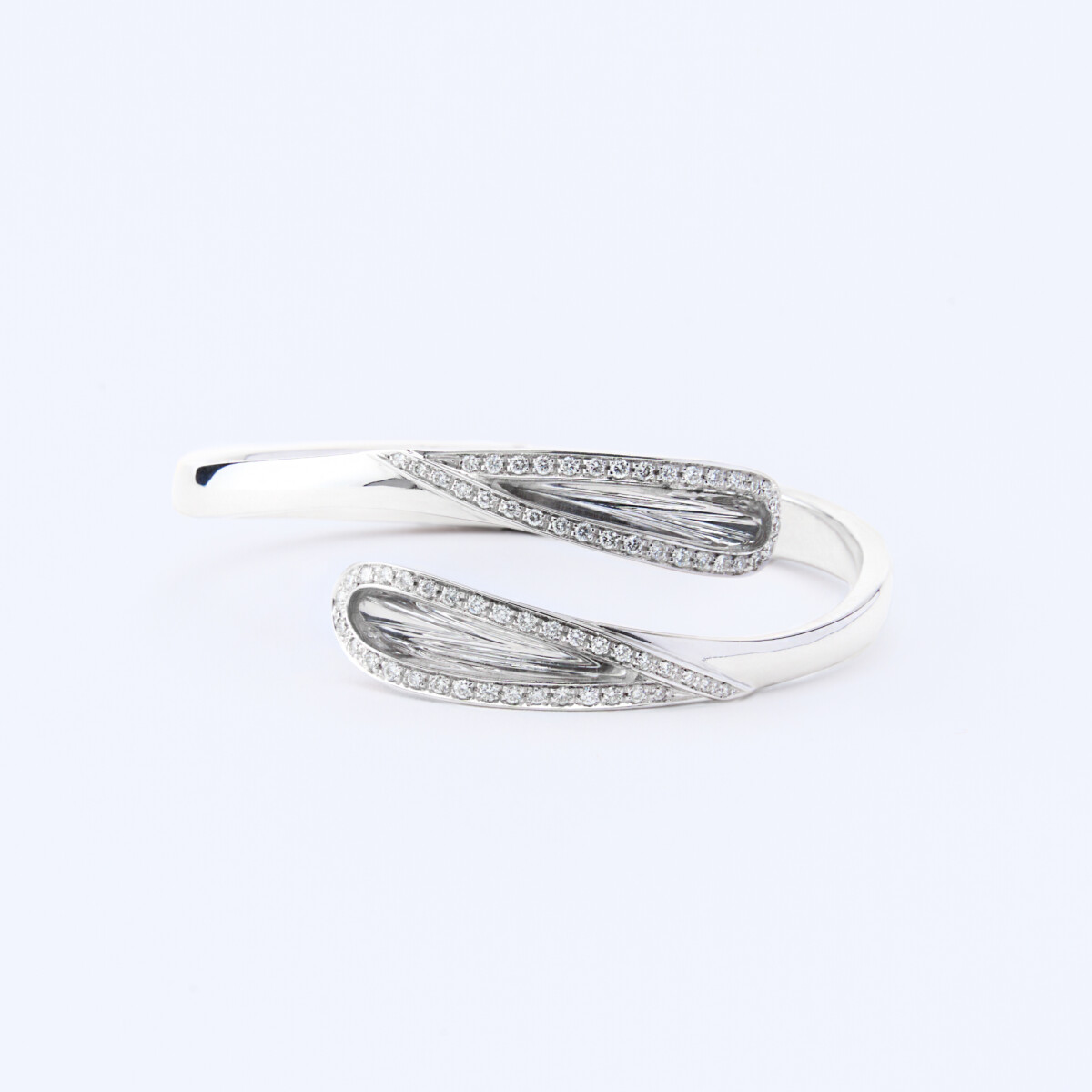 Made in 18kt white gold; high-quality brilliant cut white diamonds and inlaid Crystal Quartz.
