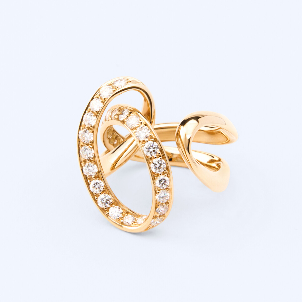 Discover the Sandra Dia Jewelry Collection, featuring rings, earrings, and necklaces adorned with a timeless weave shape. Crafted from lustrous gold in white, pink, and yellow hues, each piece exudes elegance and sophistication. Elevate your style with this captivating collection