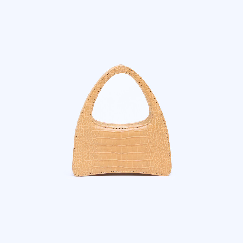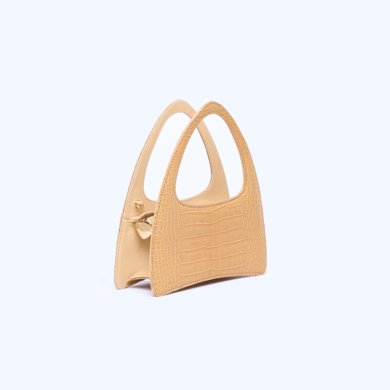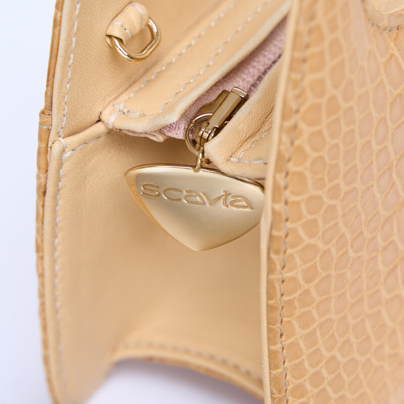 Borsa a mano Ellie Triangle, realizzata in pregiata pelle di Alligatore e Vitello. Chiusura realizzata artigianalmente in 3 micron d’oro giallo.