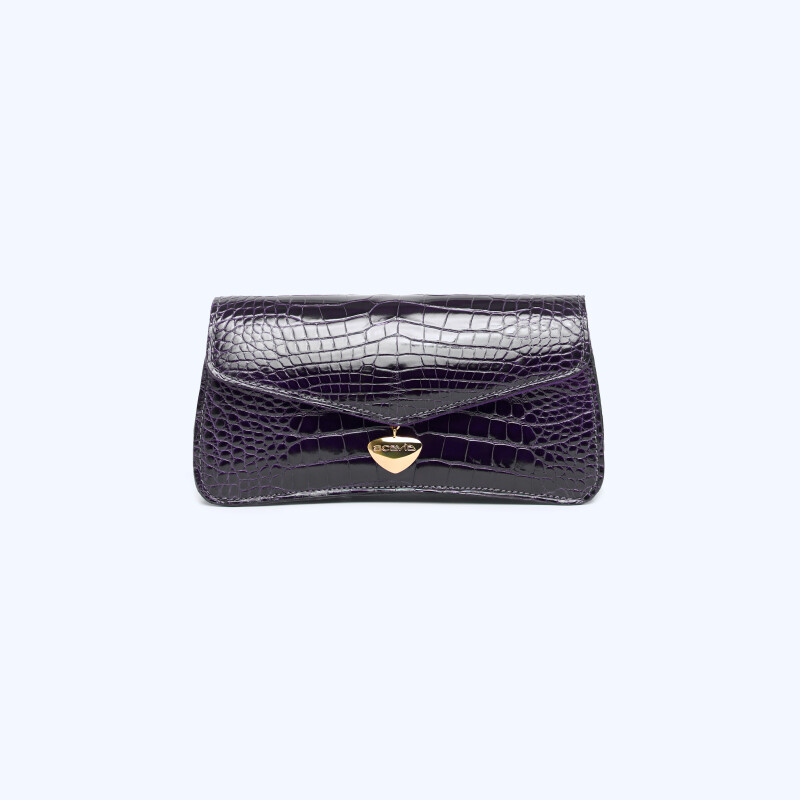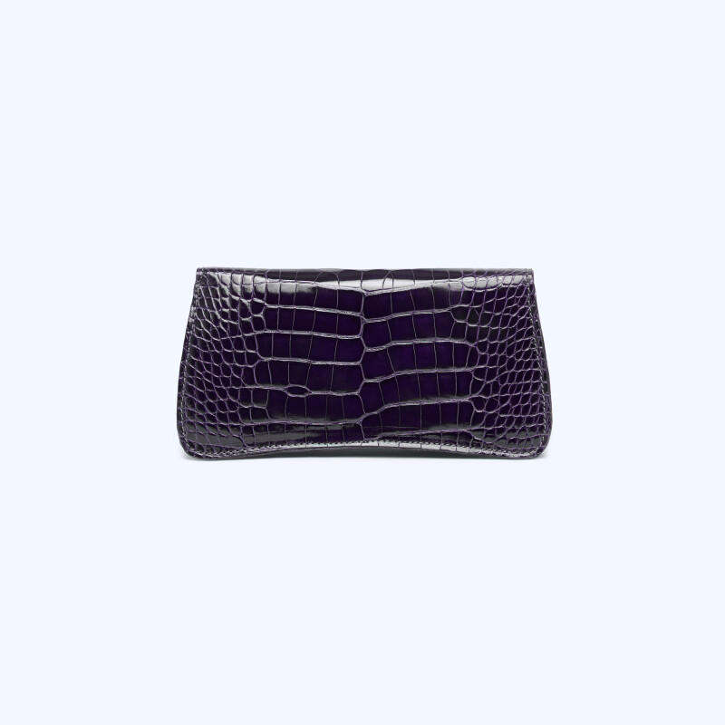 Pochette "Ellie" Cigarette, realizzata in pregiata pelle di Alligatore. Chiusura realizzata artigianalmente in 3 micron d’oro giallo.