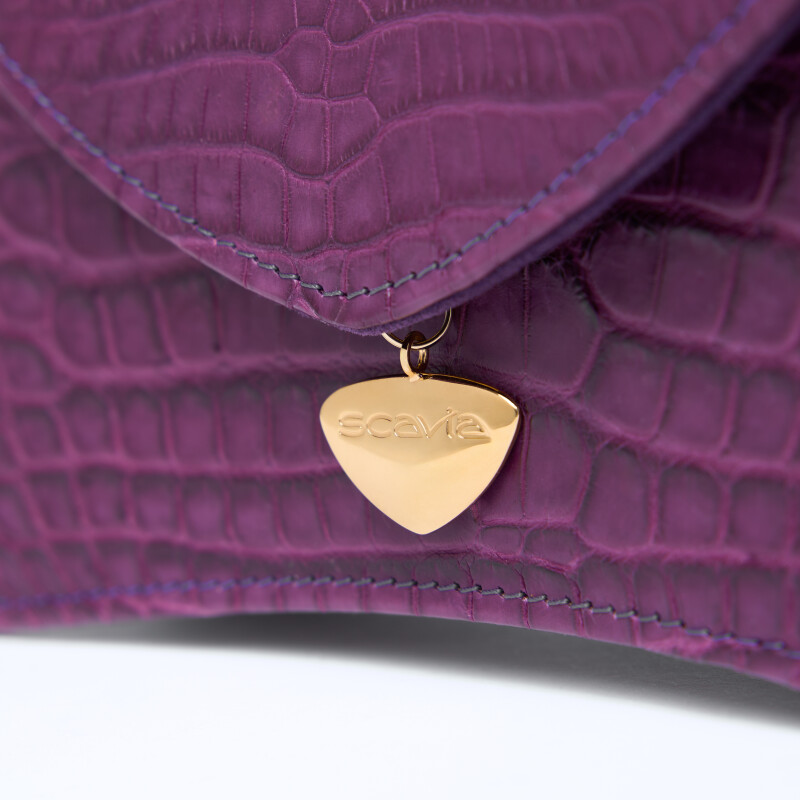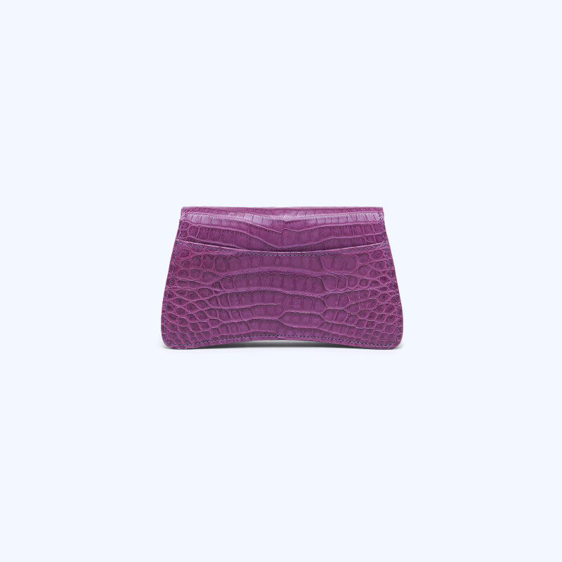 Pochette "Ellie", realizzata in pregiata pelle di Alligatore. Chiusura realizzata artigianalmente in 3 micron d’oro giallo.
