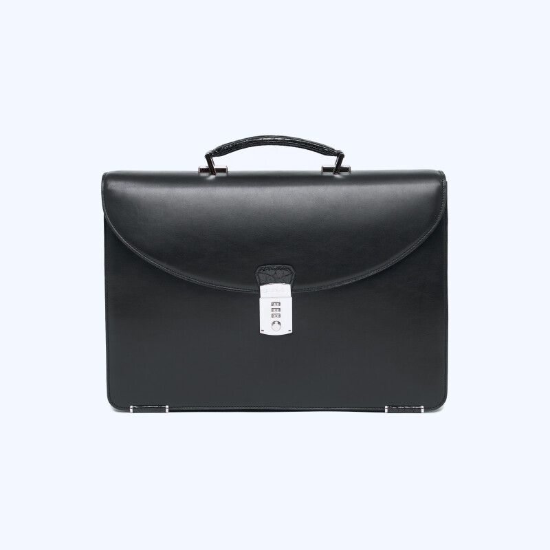 "Borsa a mano Lenny, realizzata in pregiata pelle di alligatore e vitello, con chiusura a pressione e combinazione rifinita in 3 micron palladio."